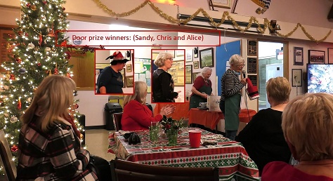 The very enjoyable evening was capped off by presentation of door prizes (chocolates and Anita’s tortiere), winners Alice, Sandy and Chris.