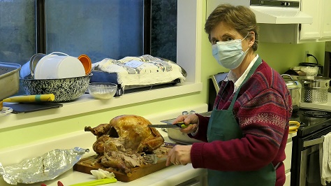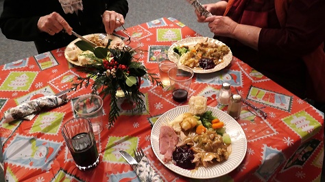 Over thirty members gathered at the clubhouse Wednesday to enjoy Christmas cheer and a traditional turkey dinner prepared and served by our new Social Co-ordinator Anita, Caroline and Alice. These volunteers laboured a good part of the day in the kitchen to put on this spread so appreciated by all who attended. Sandy manned the bar. Attendees sat at tables of four, each decorated with a centre piece created by Barb.